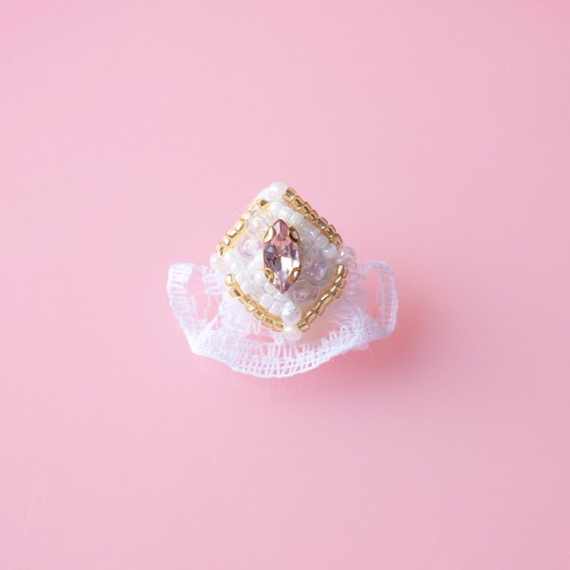 ベリーソースをとろりとかけたホイップのように甘くてキュート✧˚. クリアなビーズとレースが手元をときめかせてくれます♡ リングは調整可能となっております。 size:全長 約3㎝(レース込み) /横 約2.5㎝(ビーズ刺繍本体部分) 発送期間:入金確認後5営業日以内に発送いたします。 後払い決済の場合は注文確定後、5営業日以内に発送いたします。 ※アレルギー非対応金具となっております。金属アレルギーの方はお気を付けください。 ※ハンドメイド商品です。繊細な作りのため、取り扱いにはご注意ください。 ※手作業で制作しているため、ゆがみや左右非対称などの不具合等がある場合があります。返品の対象にはなりませんのでご了承ください。 ※サイズは若干の誤差が生じる可能性がございます。