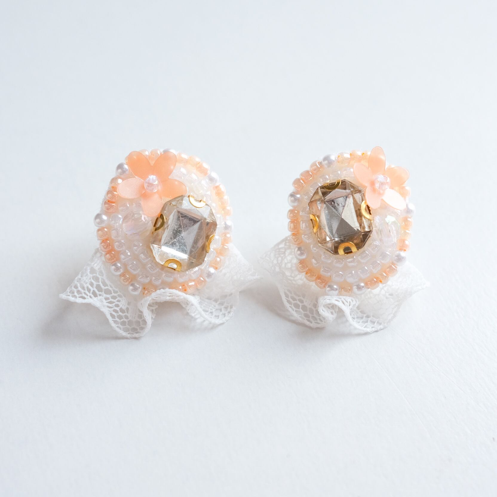 クリアなビジューがキラキラと輝き、ひらひらのレースが優雅さを演出し、耳元で華やかに˚˖⁺✦