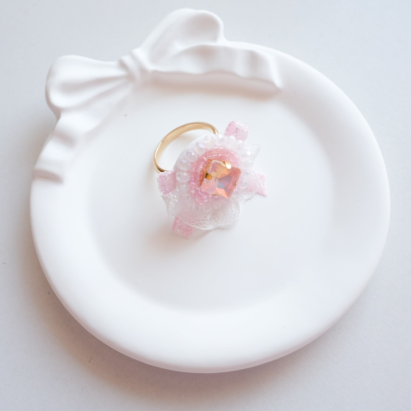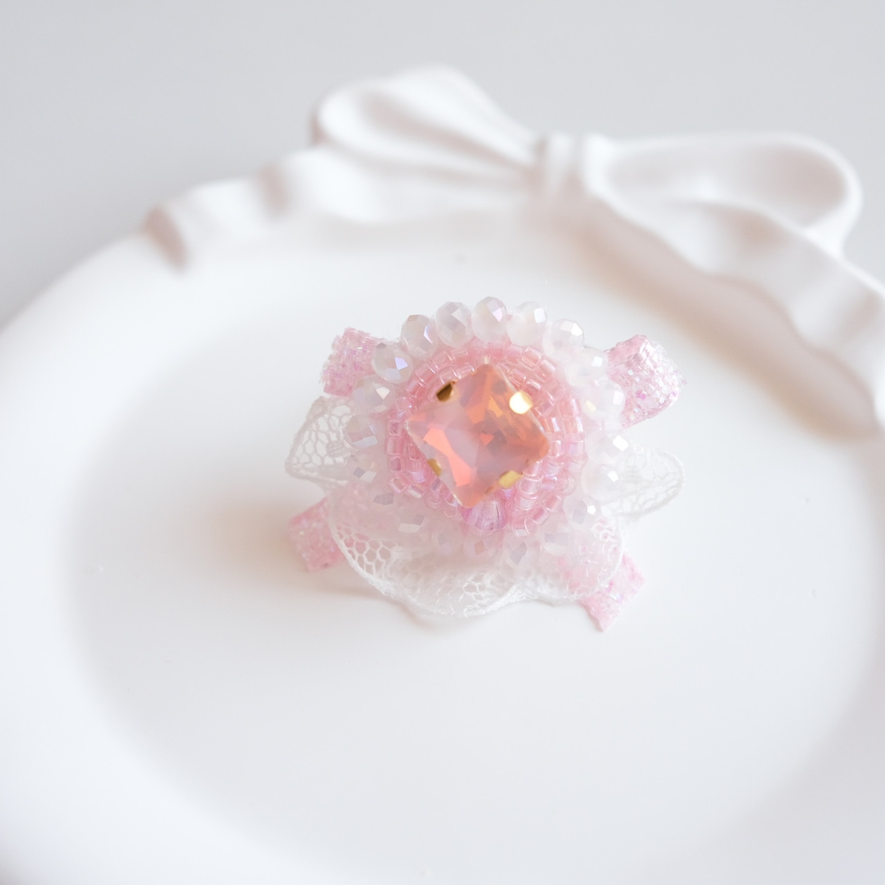 キラキラのピンクリボンと周りをぐるっと囲んだビーズもキラキラしているので、手元が華やかになります₊˚⊹ ᰔ