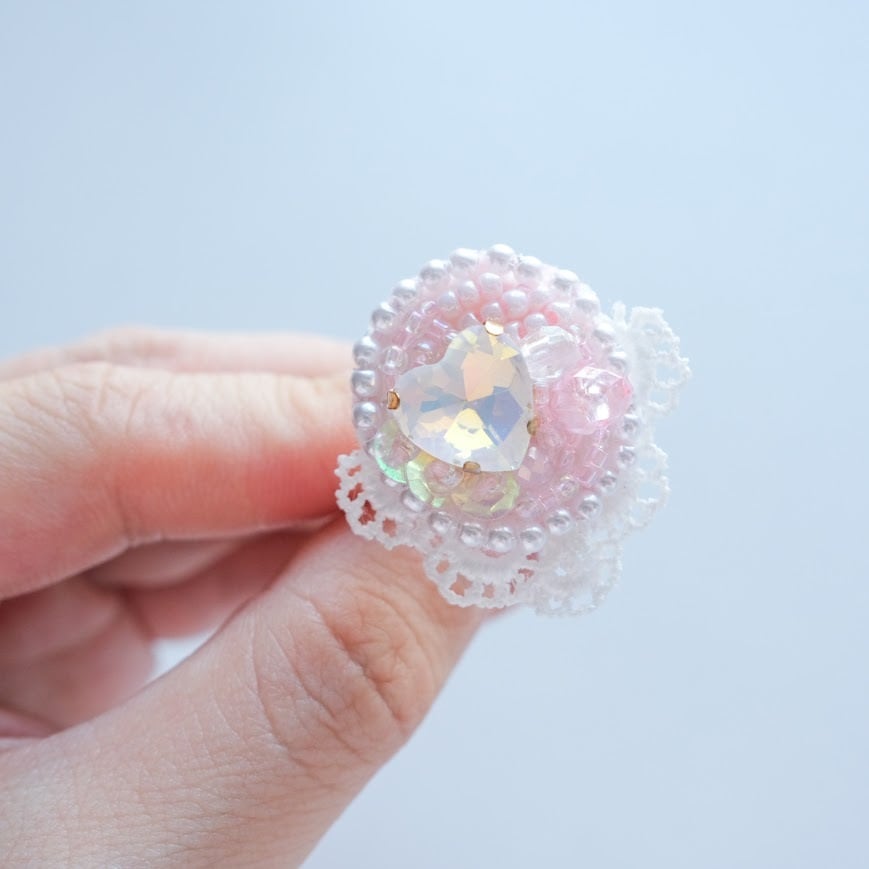とろけるようなハートのきらめきに、繊細なレースとパールを添えて˚˖°.⊹ ࣪ ˖