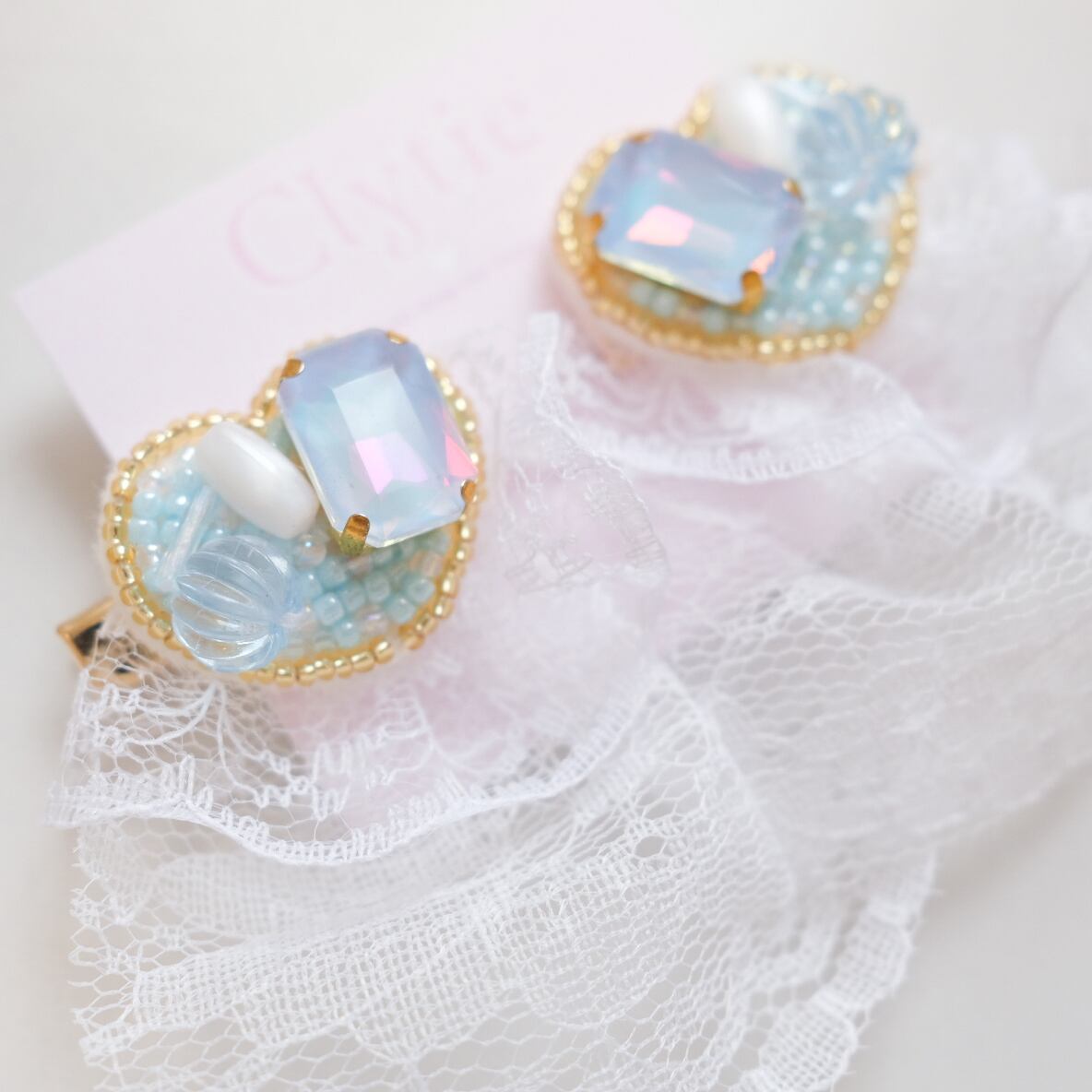 ひらひらのレースがたくさんついたヘアクリップ♡