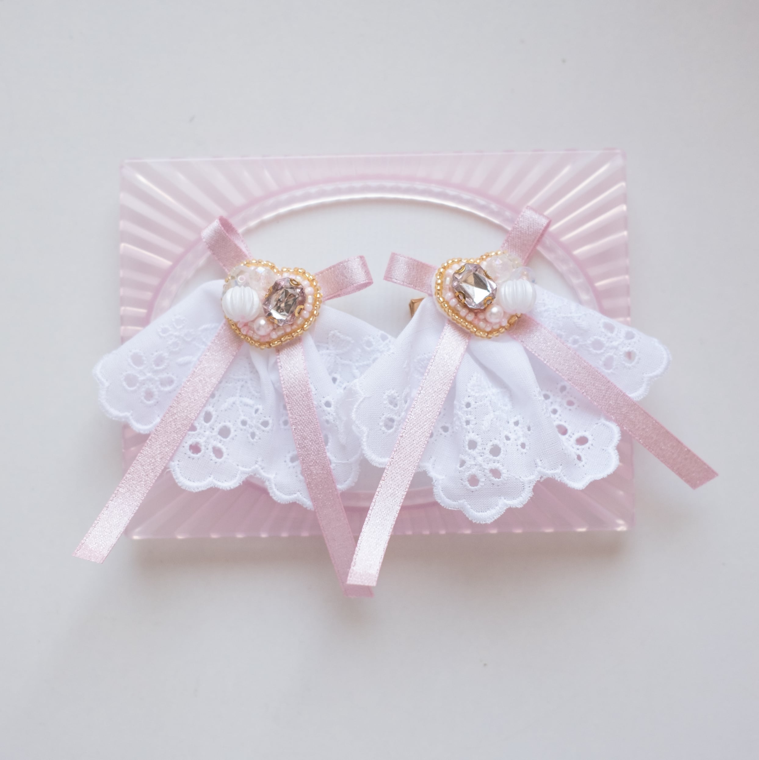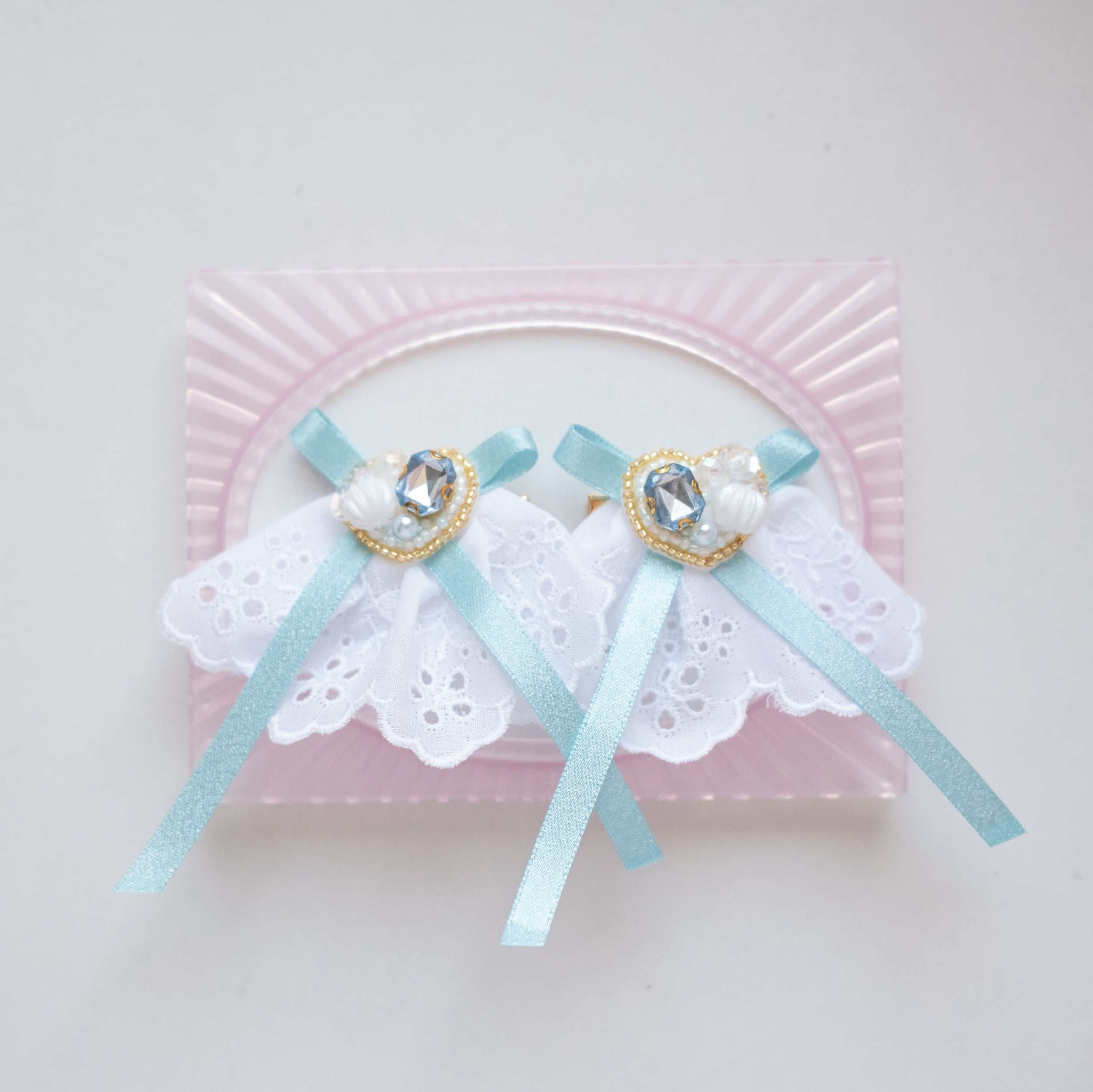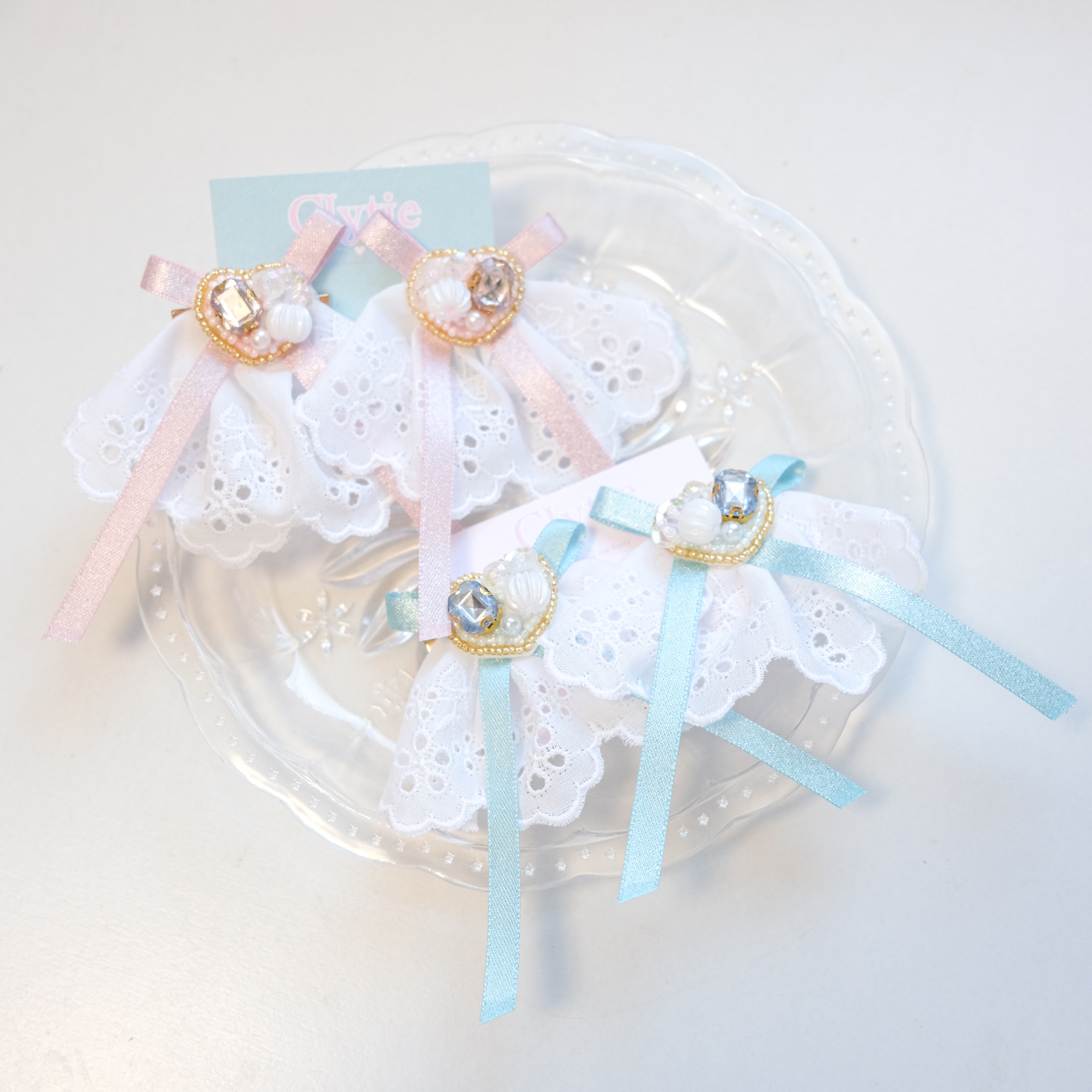 冬の妖精がキラキラでふわふわな雪を降らせているようなそんなイメージでつくったヘアクリップです✧˖°