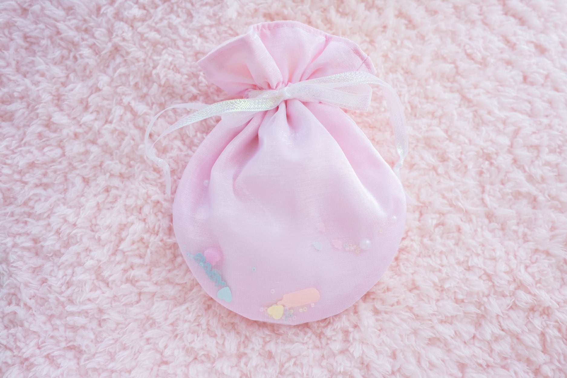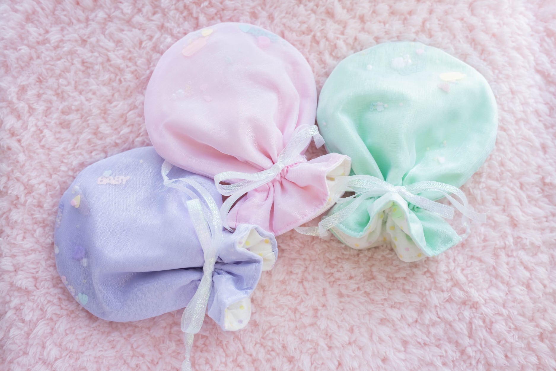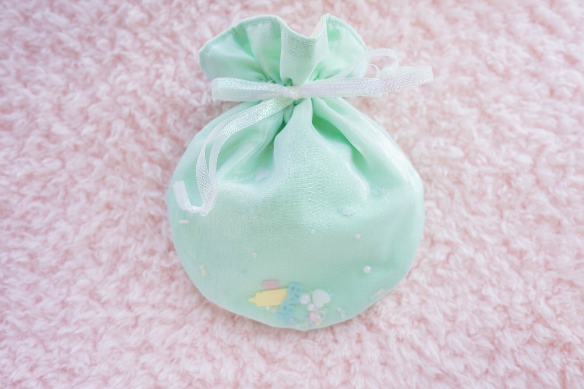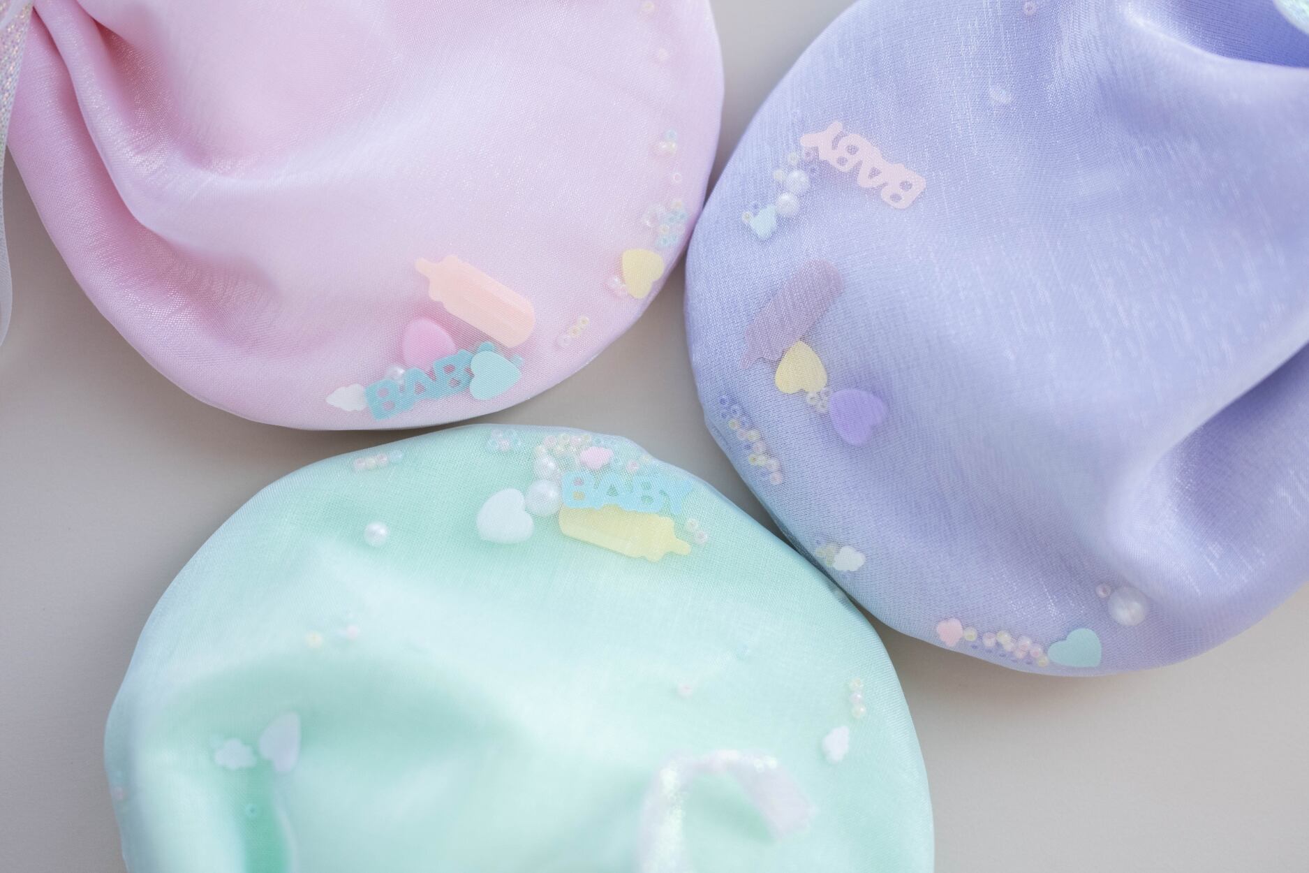 Babyモチーフのパーツやビーズをオーガンジーで閉じ込めました✧*。