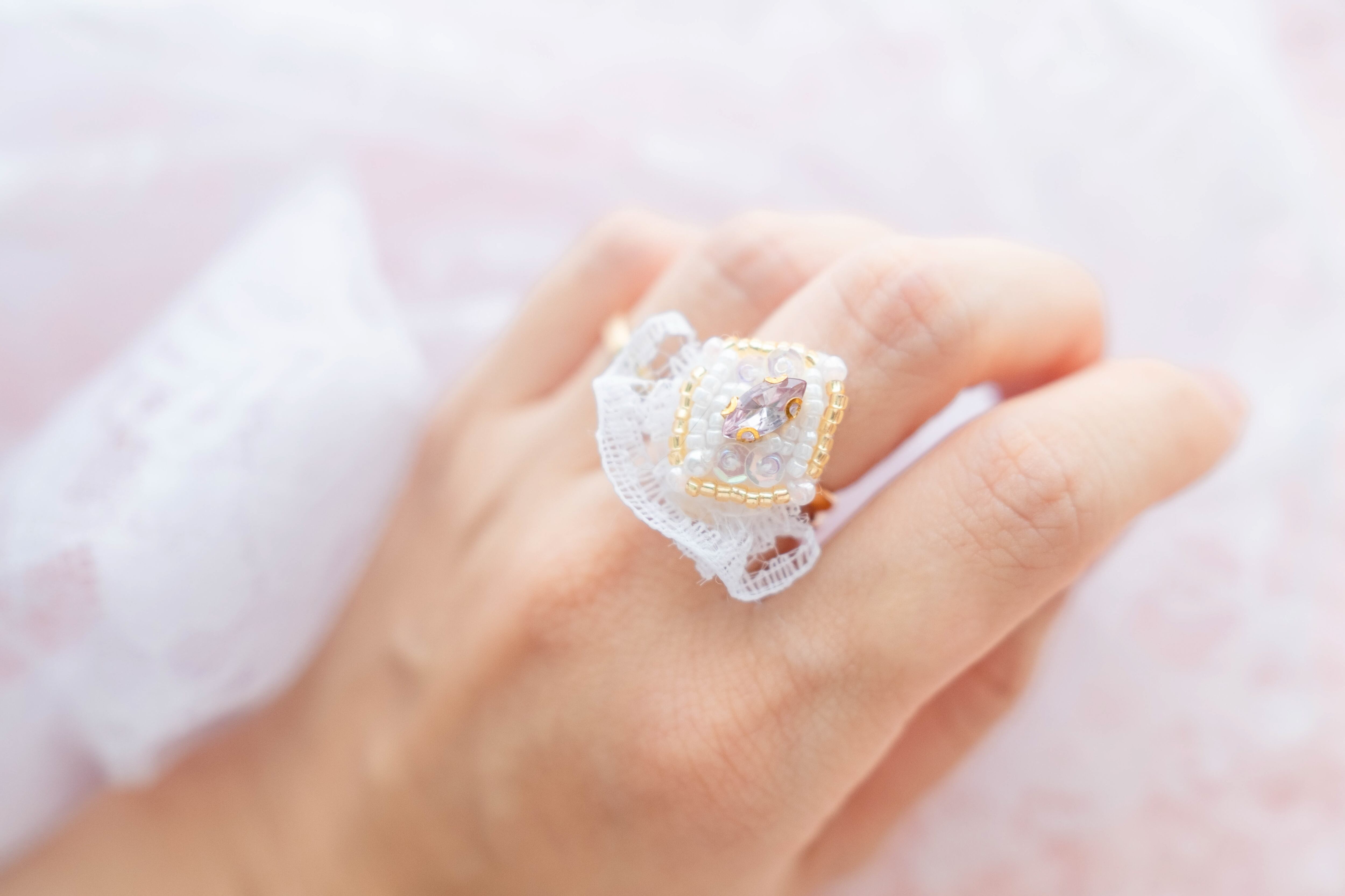 バレリーナのチュチュをイメージしたヒラヒラとしたレースをつけたリングです☪︎*。꙳