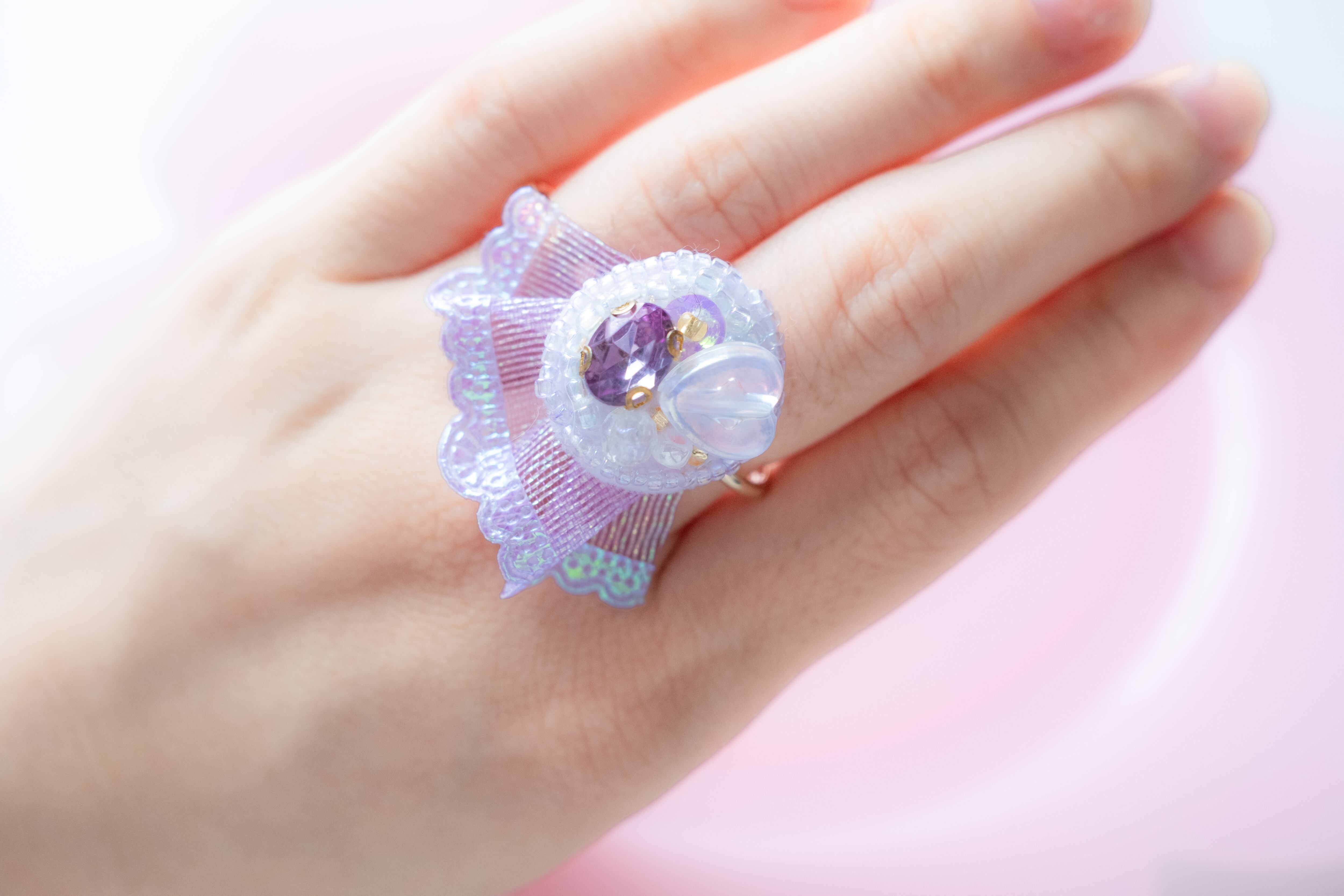 紫のオーロラレースを使ったリングです* ੈ✩‧₊˚