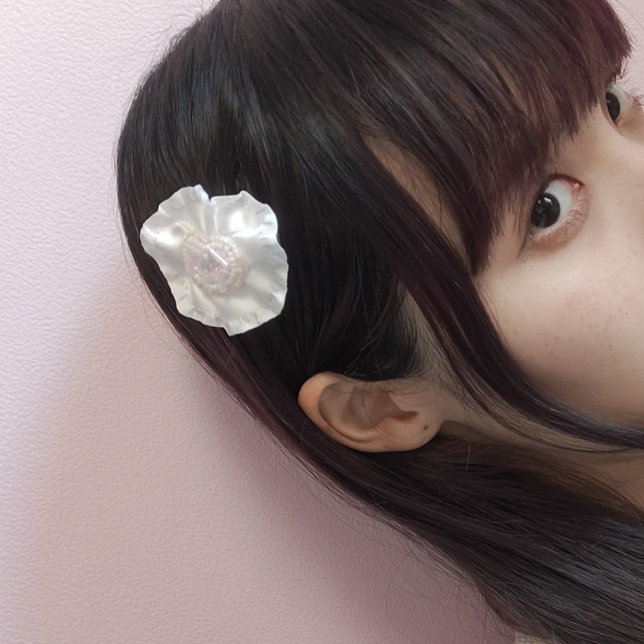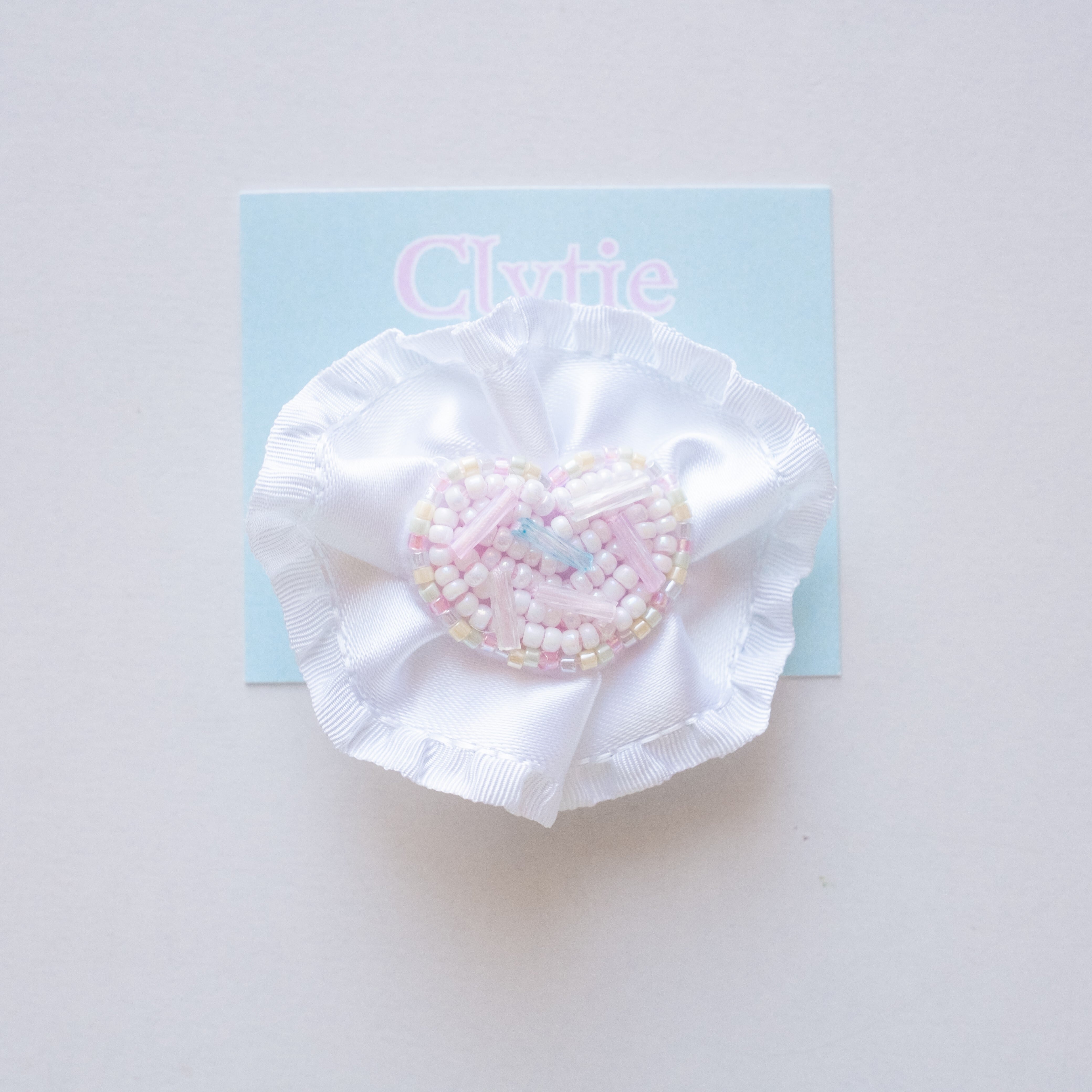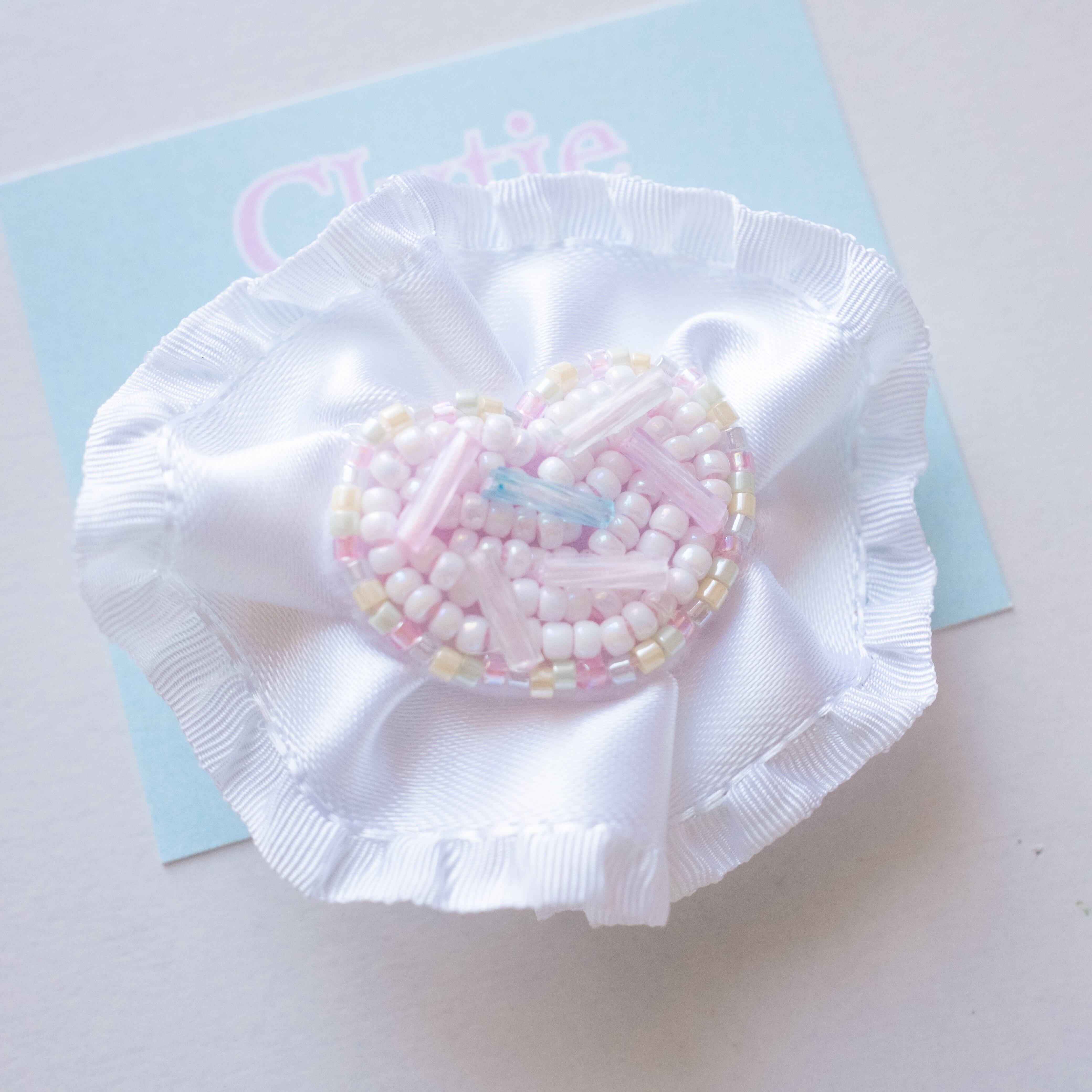 生クリームみたいなリボンとスプリンクルみたいなビーズを使った甘いお菓子をイメージしたヘアクリップ*✲゚*。 ♪